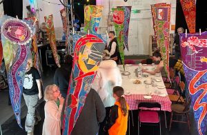 Displayed at the close of the project within the historic Citrus Arts building, the silks filled the hall with bold colour. Together, they form a moving tribute to resilience, aspiration, and the continuity of community spirit across generations.