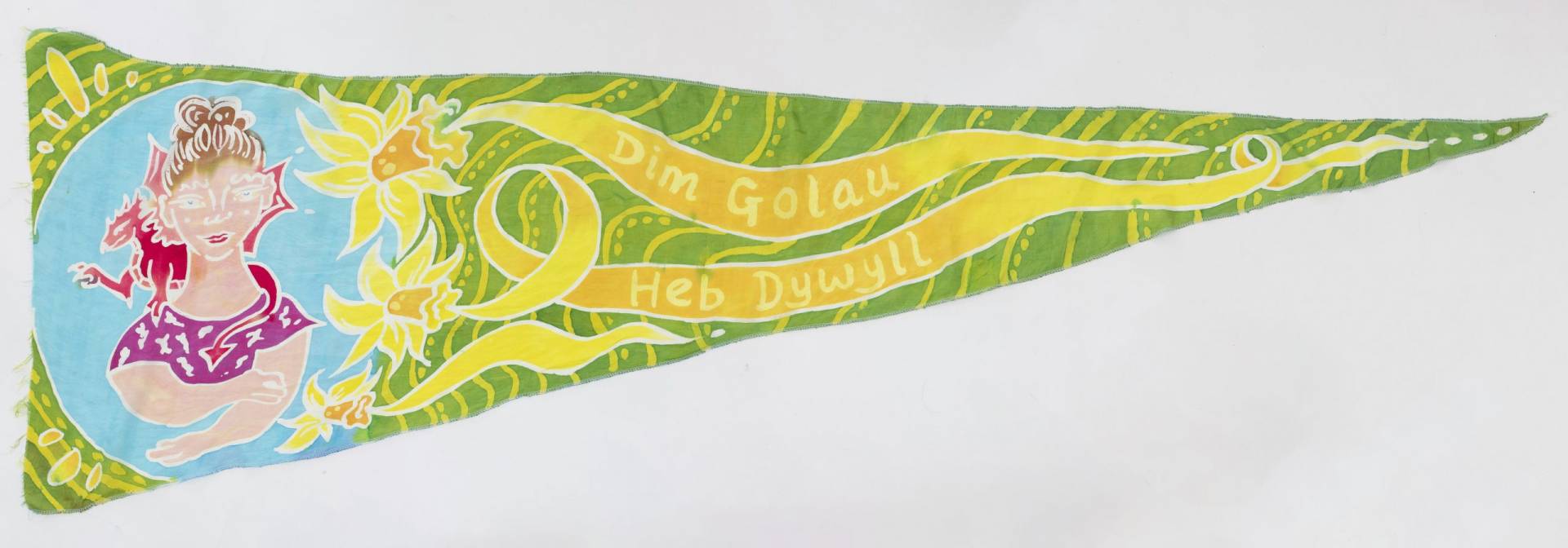This collaboration created space for diverse voices to reflect on their lived experiences while honouring those who came before them. The artworks celebrate the dignity of work in all its forms, from manual labour to creative and emotional labour, and propose hopeful futures shaped by the dreams of today’s youth. Each flag was personally designed and hand-painted, reflecting the varied roles and responsibilities of the communities in the lower Rhondda Valley – from foresters and foundry-workers to mothers, clowns, carers, and campaigners.