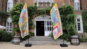 The banners, measuring 3.5 metres each, incorporate motifs inspired by the Lodge’s historic furnishings and architectural details, linking contemporary youth voices to the building’s rich heritage. Painted in a palette reflective of the Lodge’s interior, the silk artworks now fly proudly within the space, greeting visitors and marking the young people’s creative contribution to this historic site.